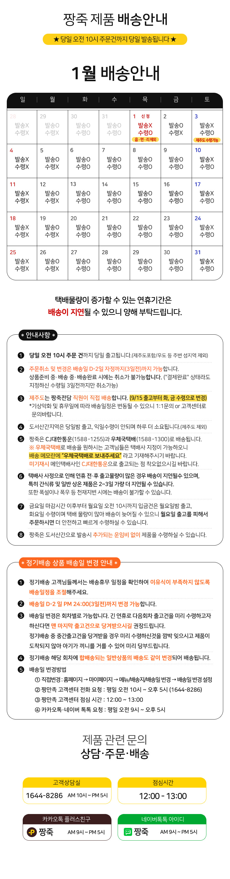 ☎ 주문 발송마감 : AM 10시 마감