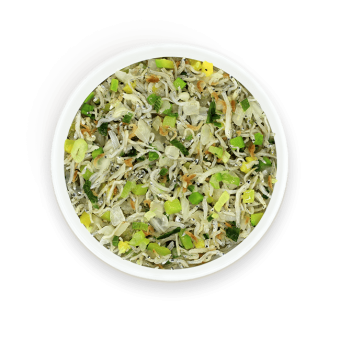잔멸치24.9%(국산), 양배추17.5%(국산,무농약), 양파12.5%(국산,무농약), 애호박, 파, 물엿, 대두유, 미림, 잔새우, 설탕, 쌀눈(국산) [대두, 새우 함유]