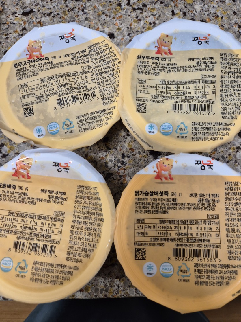 이제 거의 8개월 되어가는 아가인데 짱죽 이유식을 잘 먹네요 분유는 남겨도 이유식은 안남겨요 골고루로 구매해서 단백질이 부족하게 오지 않을지 걱정했는데 한우랑 치킨이랑 골고루 보내주셨네요 한우가 더 많이 있었어요 한입먿고 바로 아~하는 걸 보니 맛있나봅니다 그래서 재주문 하려고요 유통기한도 넉넉하게 와서 유통기한 끝나기 전에 10팩 다 먹을거같네요 80그램씩 먹이는데 2.5끼정도 나오더라고요 9팩 먹고 1팩만 남아서 재주문 들어갑니다~