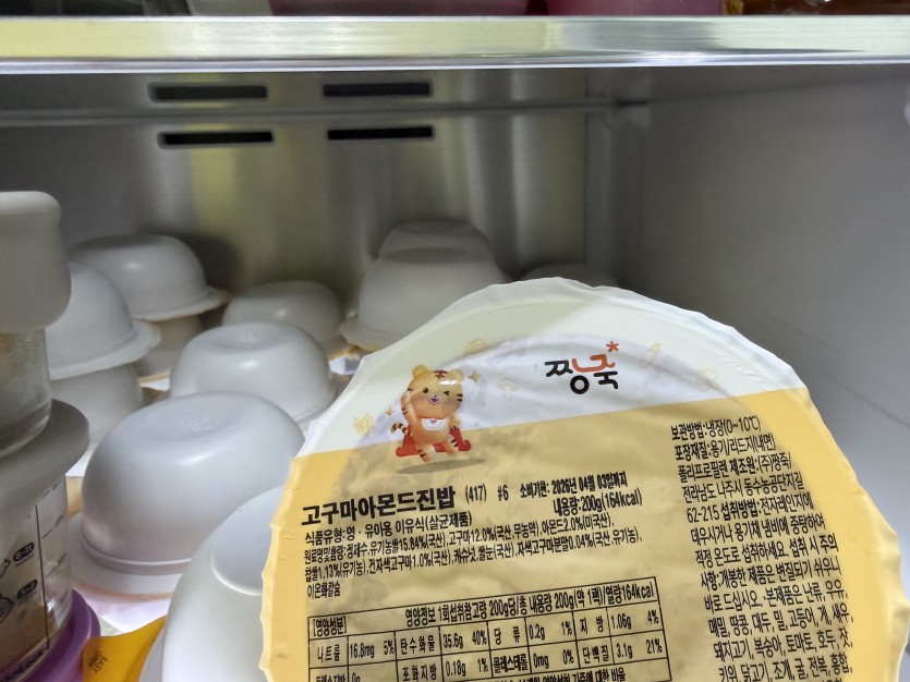 짱죽 이유식을 너무 잘먹어서 냉장고에 항상 든든하게 채워둬요 ㅎㅎ