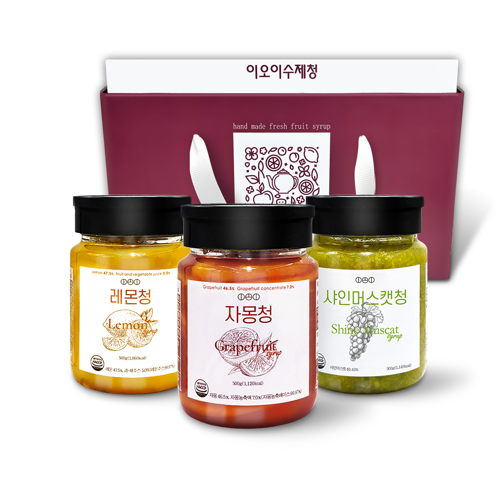 • [선물세트] 짱죽 이오이수제청 자몽+샤인머스캣+청귤 500g / 답례품