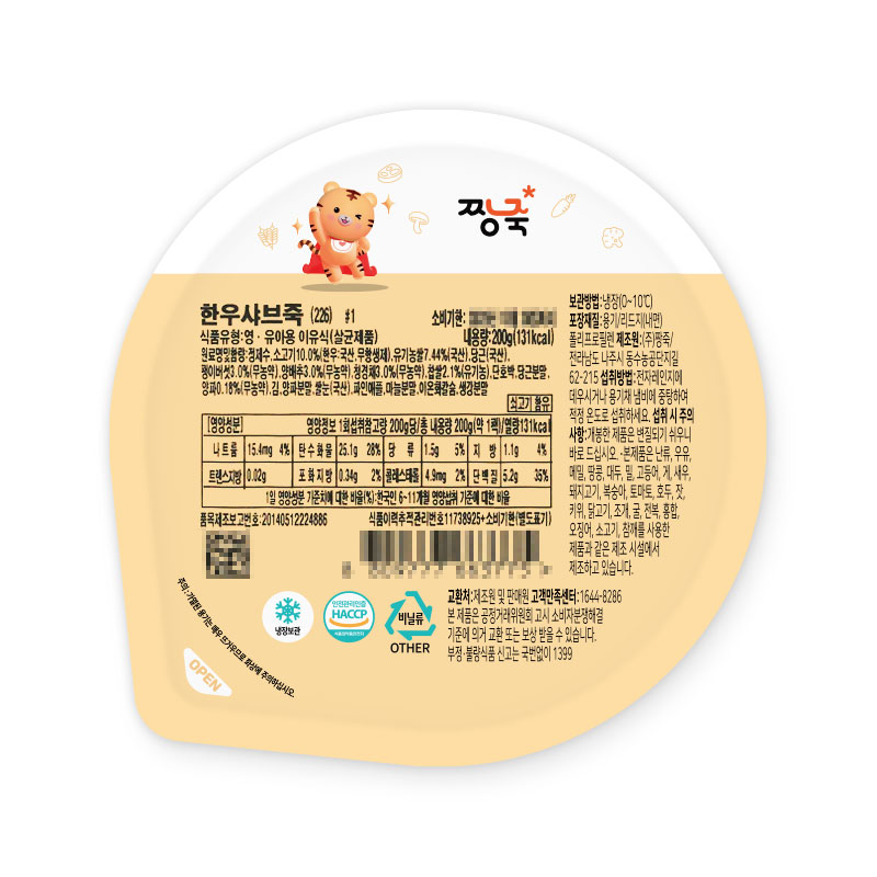 짱죽은 1팩 용량이 넉넉하므로 미리 1회 섭취량만큼 소분해 주세요!