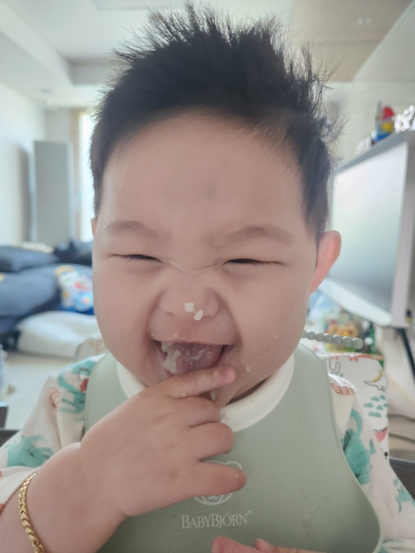 아직 삼킬줄을 잘몰라 흘리기는하지만요! 양만큼 완밥했어요!!
