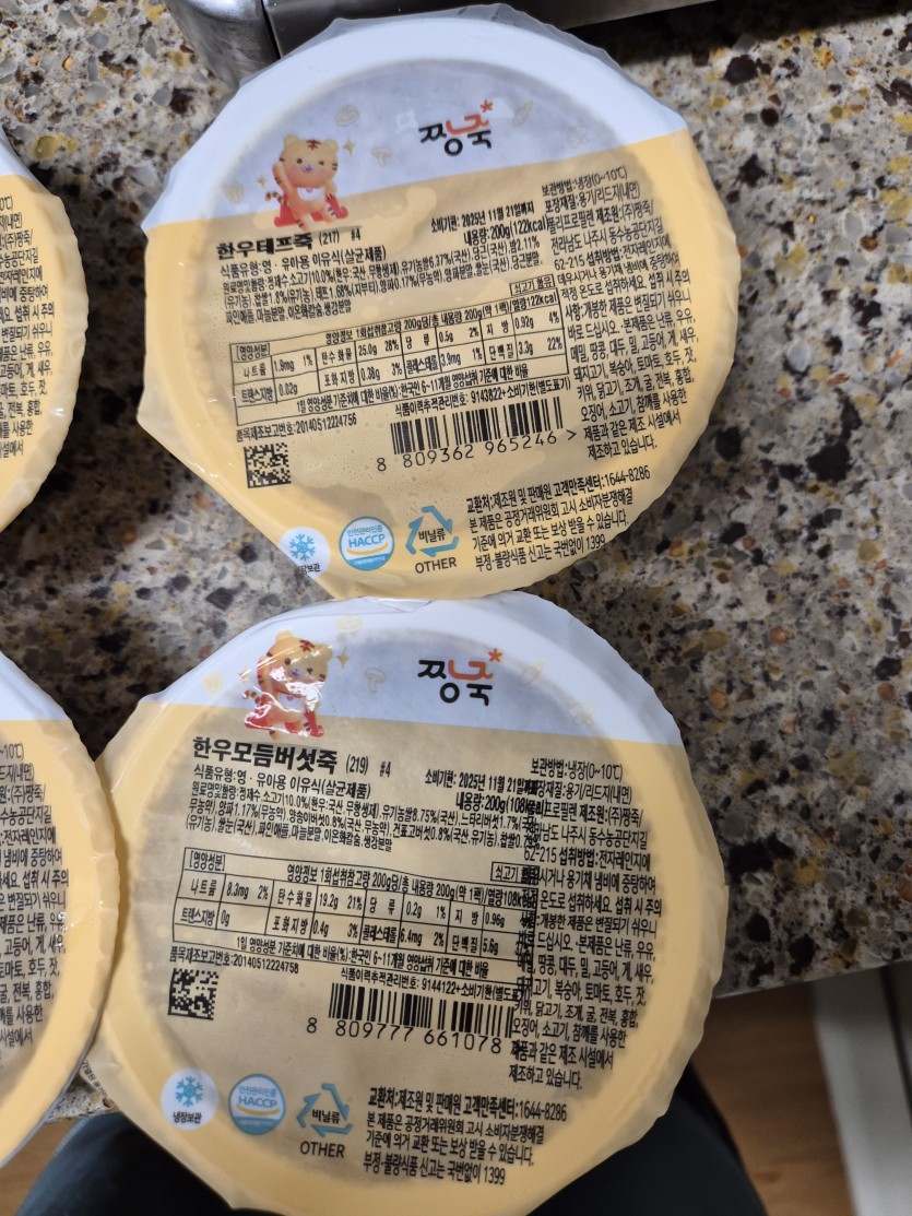 이제 거의 8개월 되어가는 아가인데 짱죽 이유식을 잘 먹네요 분유는 남겨도 이유식은 안남겨요 골고루로 구매해서 단백질이 부족하게 오지 않을지 걱정했는데 한우랑 치킨이랑 골고루 보내주셨네요 한우가 더 많이 있었어요 한입먿고 바로 아~하는 걸 보니 맛있나봅니다 그래서 재주문 하려고요 유통기한도 넉넉하게 와서 유통기한 끝나기 전에 10팩 다 먹을거같네요 80그램씩 먹이는데 2.5끼정도 나오더라고요 9팩 먹고 1팩만 남아서 재주문 들어갑니다~