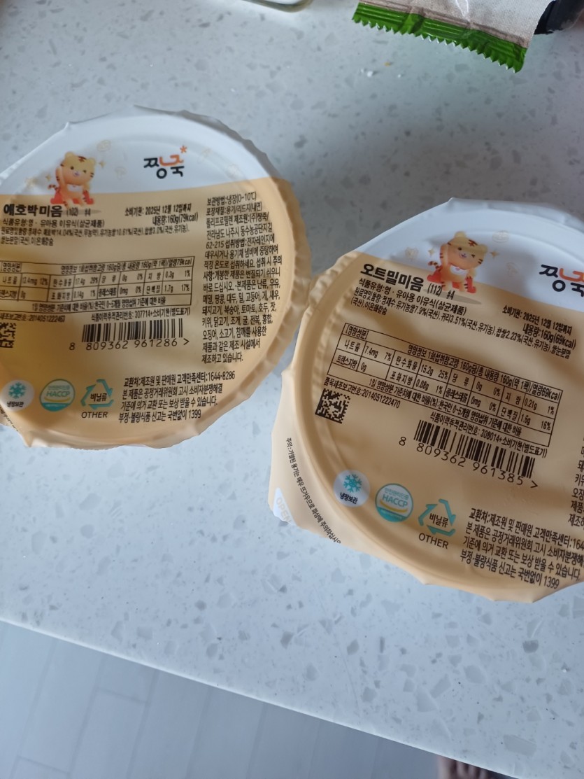 쌀미음다음으로 오트밀 줘봤어요 이건 쌀미음보다 고소한지 더 잘먹는듯 했어요 농도가 약간묽어 조금 되직하게 해서 주니 잘먹습니다!