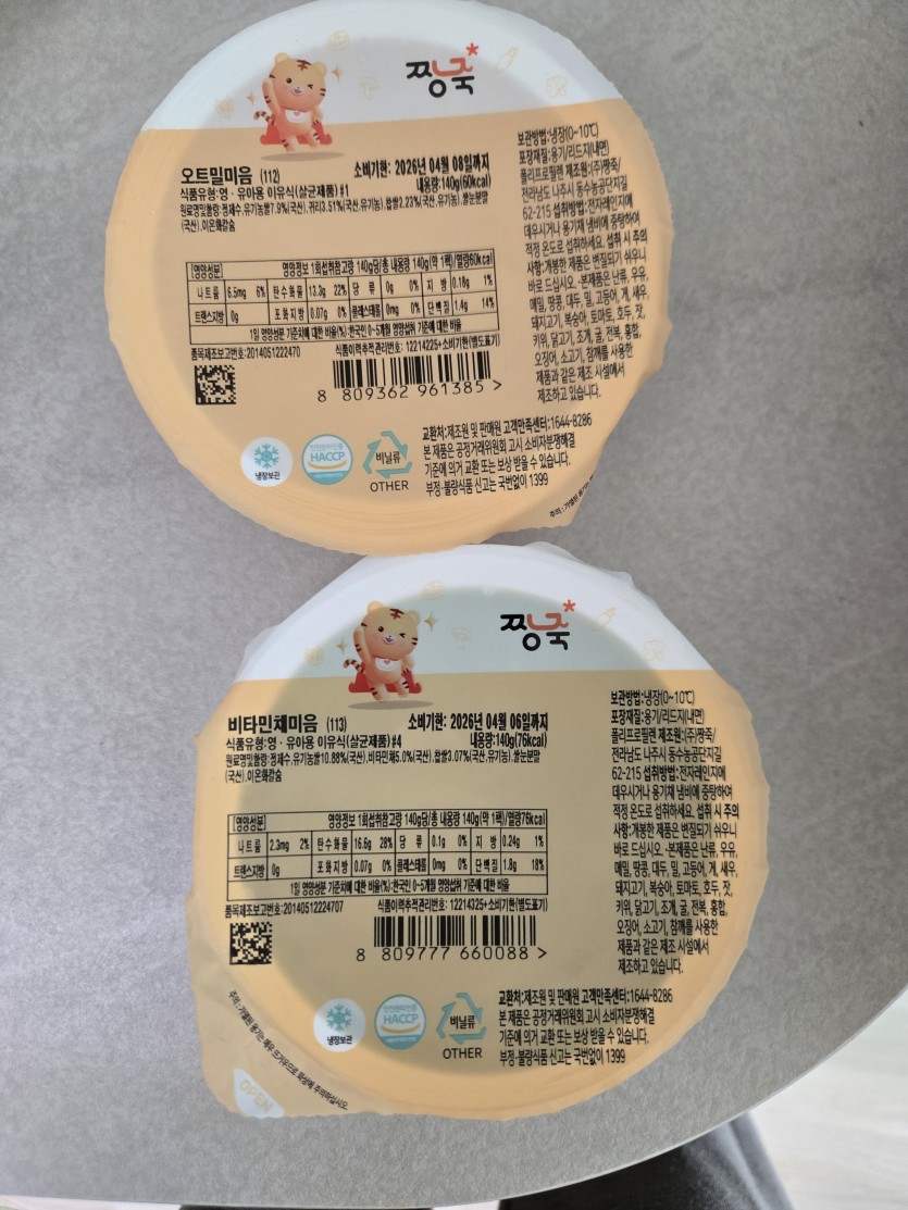 짱죽에는 오트밀미음이 있어서 체험하기 좋네요 👍
