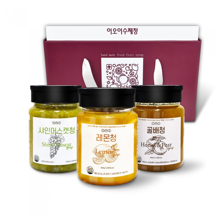 • [선물세트] 짱죽 이오이수제청 레몬+샤인머스캣+꿀배 500g / 답례품