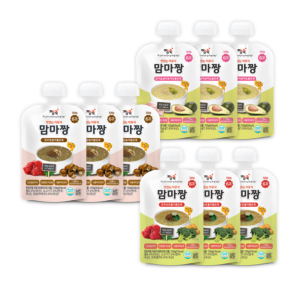 맘마짱 이유식 한우양송이묽은죽3봉+한우브로콜리묽은죽3봉+닭가슴살아보카도3봉